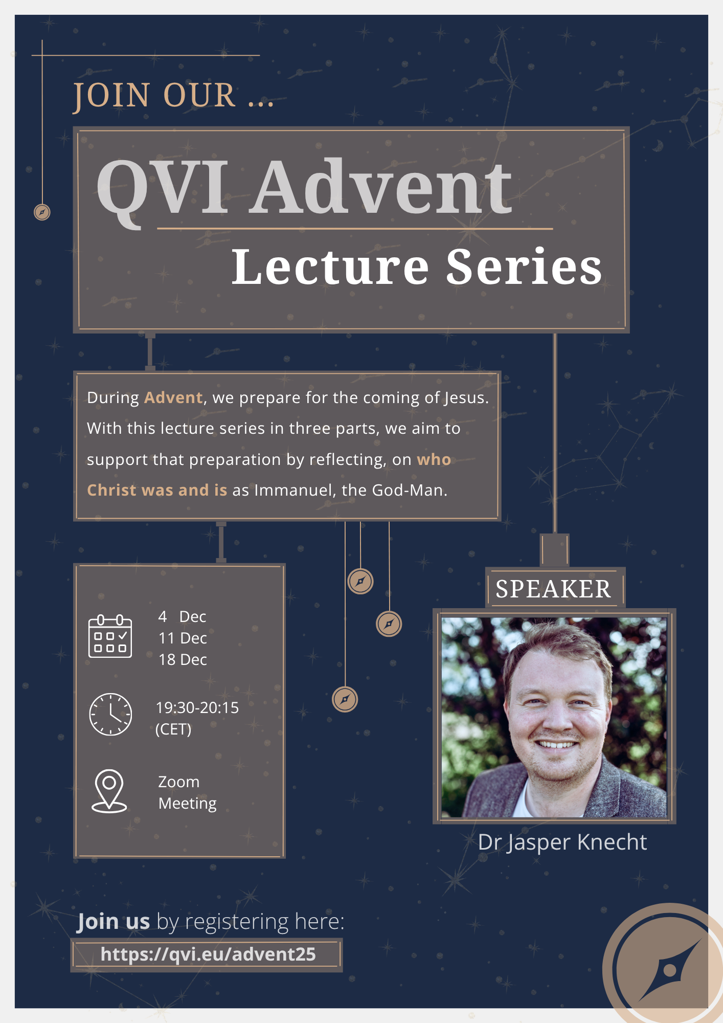 The Person of Christ is the centre of the Christian faith. In him, God came as close to humanity as is possible: he became one of us, without ceasing to be the Eternal One. In this lecture series, Dr Jasper Knecht will survey how the Church of the ages has reflected on the momentous event of this union, on the Incarnation. This series will be delivered in three parts, each with a specific focus: Christ’s humanity and divinity, his unity, and the theological significance of Christ’s Christmas coming for our understanding of and existence in the world at large. Each session will contain a lecture and (moderated) Q&A.